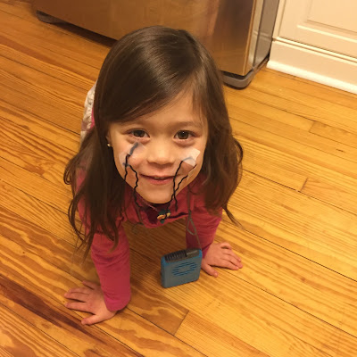 Taped "whiskers" on her face |